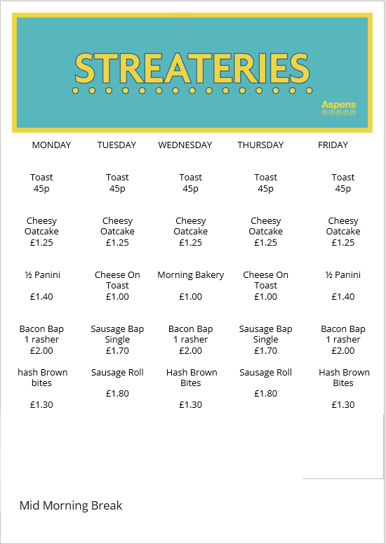At Aspens – we take our responsibility of catering for today’s children and young adults seriously. All of our dishes are prepared everyday using quality, fresh and seasonal ingredients that are responsibly sourced.